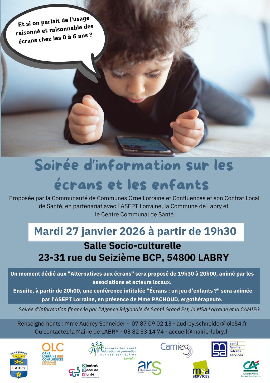Soirée proposée par la Communauté de Communes Orne Lorraine Confluences et son Contrat Local de Santé, en partenariat avec l'ASEPT Lorraine, la Commune de Labry et le Centre Communale de Santé