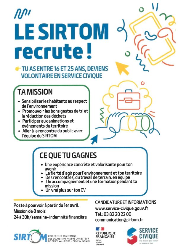 LE SIRTOM RECRUTE ! (SERVICE CIVIQUE)